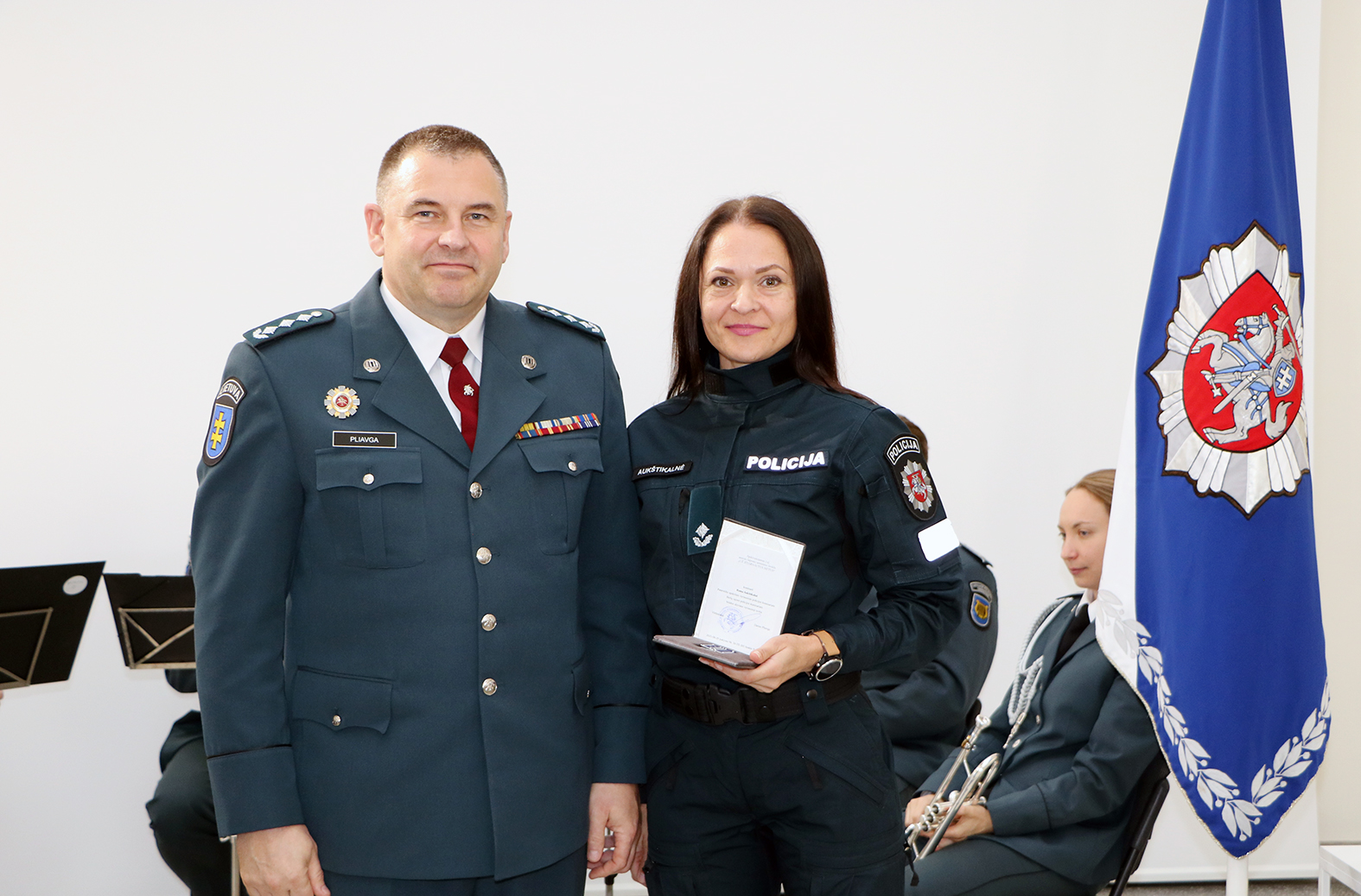 Už ilgametę tarnybą policijos įstaigose Antrojo laipsnio atminimo ženklu „Už ištarnautus metus“ apdovanota Biržų RPK komisarė, Veiklos skyriaus vyriausioji tyrėja Roma Aukštikalnė.