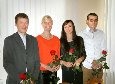 DALYVIAI: Susitikime su Šiaulių miesto meru dalyvavo (iš kairės) treneris Dainius Šaučikovas, lengvaatlečiai Remalda Kergytė, Rasa Drazdauskaitė ir Justinas Beržanskis.