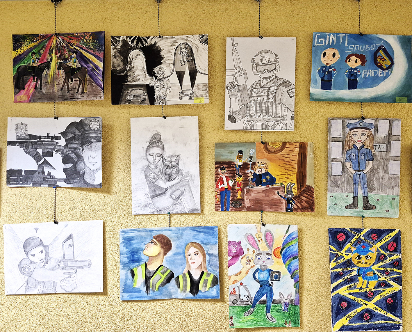 Biržų rajono policijos komisariato pirmame aukšte veikia vaikų piešinių, skirtų konkursui „Policija mano akimis“, paroda, kurią galima apžiūrėti.