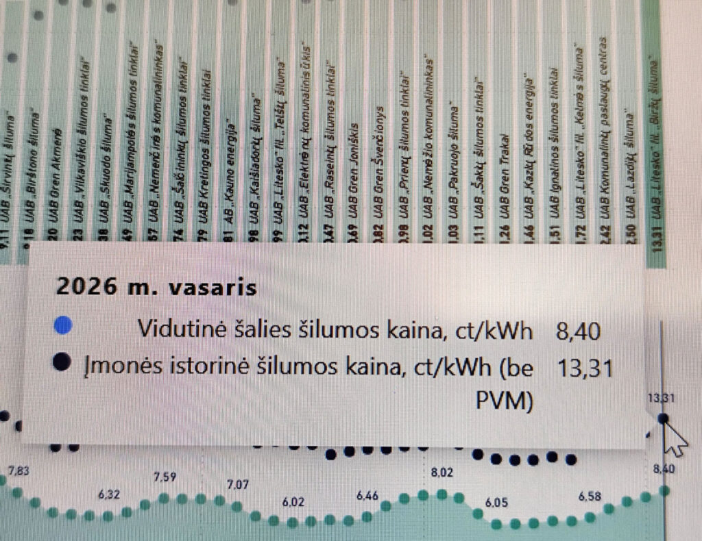 Sausio mėnesį UAB „Litesko“ filialas „Biržų šiluma“ skelbė, kad biržiečiai už šilumą moka po 12,33 ct/kWh (be PVM), nors vidutinė centralizuotai tiekiamos šilumos kaina šalyje buvo 7,97 ct/kWh (be PVM).