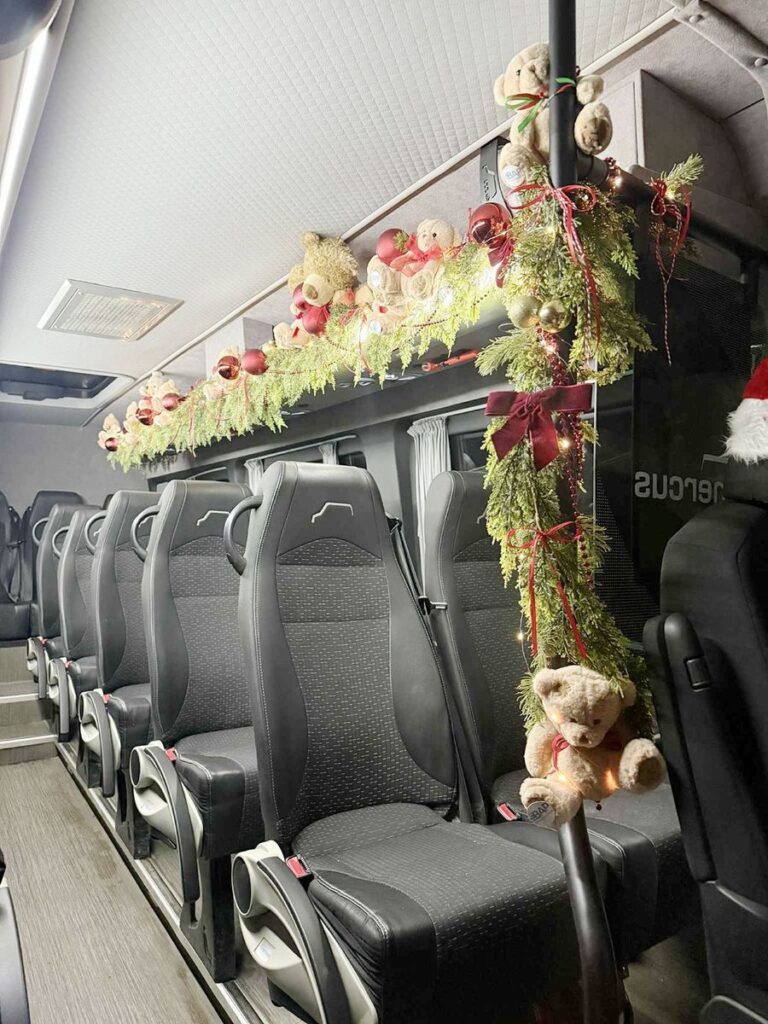 Kalėdine nuotaika spinduliuojantį autobusą puošė bendrovės darbuotojai. Pabrėžiama, kad dekoracijos sukurtos nepatiriant bendrovei jokių išlaidų.
