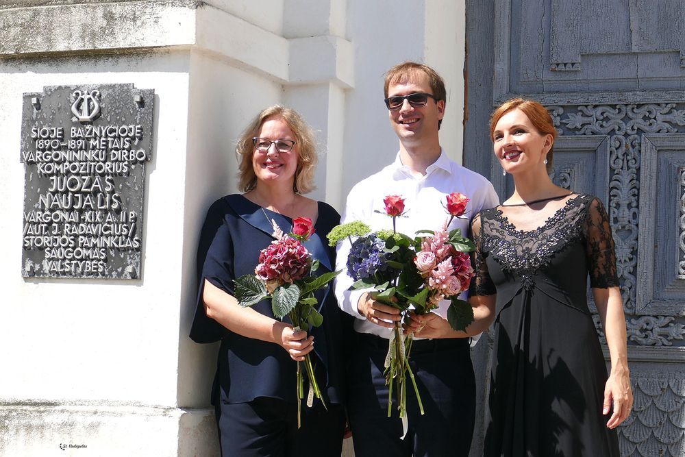 S. Šerytė (iš kairės), V. Norkūnas ir R. Dubinkaitė Vabalninko bažnyčioje žavėjo susirinkusius barokinio stiliaus muzika.