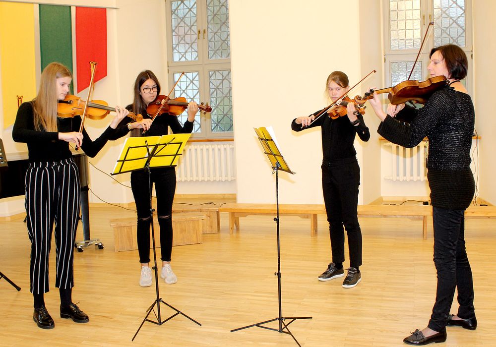 Smuikininkes keitė pianistė, mokytoja Roma Butkevičienė atlikusi melodingą, romantišką kompozitoriaus noktiurną fortepijonui.