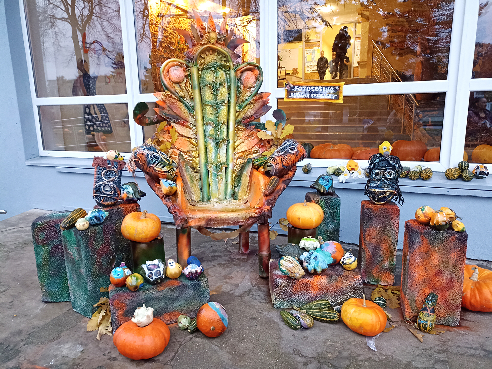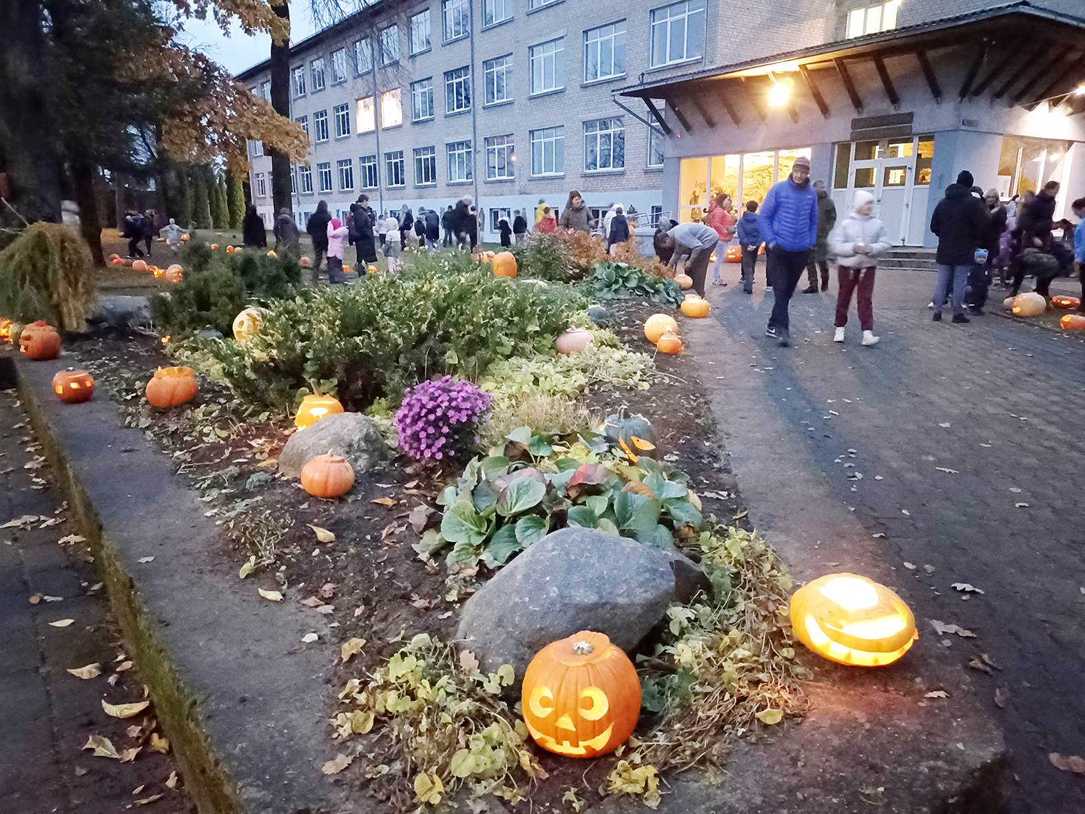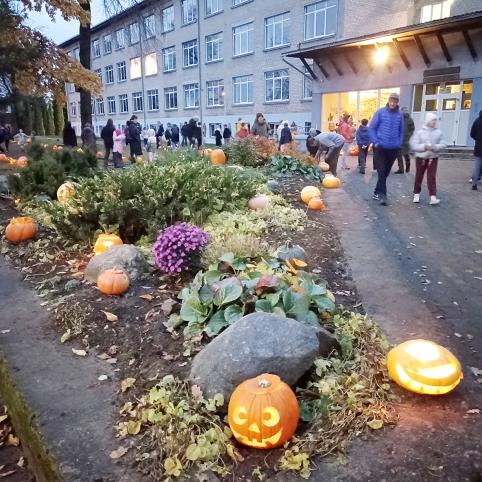 „Atžalyno“ pagrindinė mokykla penktadienio vakarą pasipuošė moliūgais.