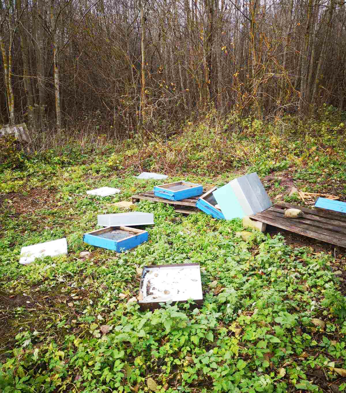 Bitininkai Asta ir Rytis Milkeriai skaičiuoja nuostolius – žuvo penkios bičių šeimos, apgadinti septyni aviliai ir juose buvę „magazinai“ – mediniai rėmeliai su vaško plokštelėmis. Išmėtytus avilius teko atstatyti, tačiau kai kurie buvo visiškai sulaužyti.