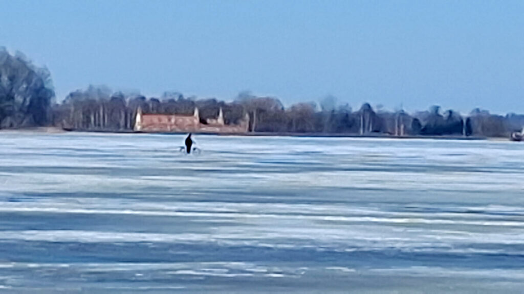 Nors ledu vaikščioti pavojinga, atsirado „drąsuolis“, kuris dviračiu įveikė visą ruožą skersai ežero – nuo Astravo dvaro link Reformatų bažnyčios. Laimei, ugniagesiams šį kartą gelbėti nereikėjo, tačiau nelaimės atveju kažin ar būtų spėję.
