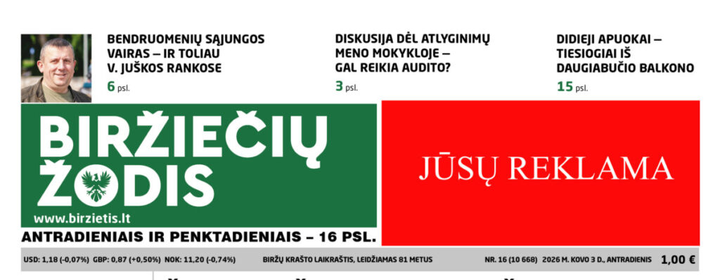 Biržų krašto laikraštis „Biržiečių žodis“ leidžiamas ANTRADIENIAIS ir PENKTADIENIAIS. (1-16 puslapiai spalvoti).
