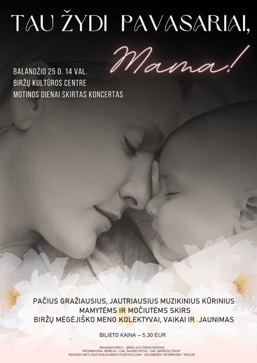Balandžio 25 d. 14 val. – koncertas, skirtas Motinos dienai „Tau žydi pavasariai, Mama“. Trukmė – 2 val. Bilieto kaina – 5.30 Eur.