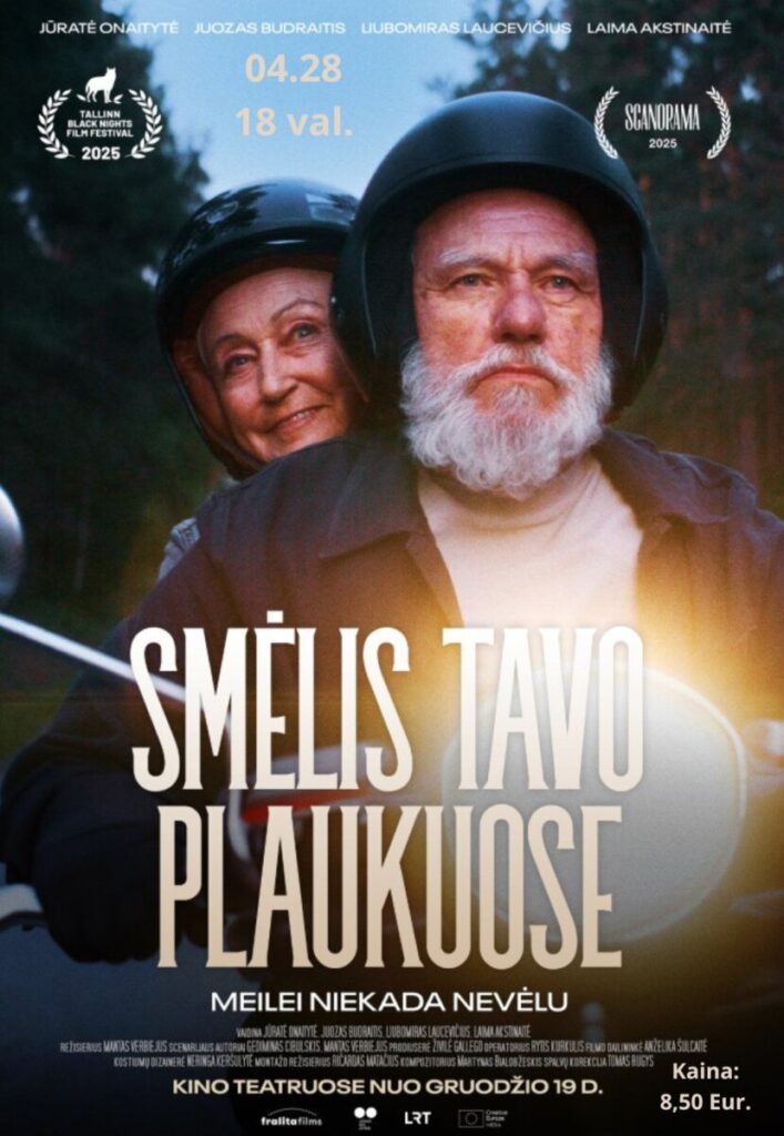 Balandžio 28 d. 18 val. – kino filmas suaugusiems „Smėlis tavo plaukuose“. Trukmė – 1 val. 40 min. Bilieto kaina – 8.50 Eur.