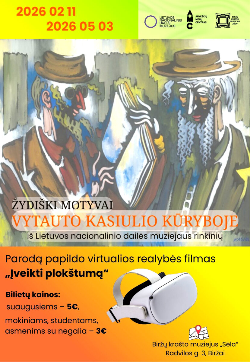 Kviečiame Jums patogiu metu ateiti į Biržų krašto muziejų „Sėla“ ir pažiūrėti virtualios realybės filmą apie dailininką Vytautą Kasiulį „Įveikti plokštumą“. Jis vienas įdomiausių XX a. antros pusės Paryžiaus mokyklos tapytojų, įvairia technika sukūręs per 2700 darbų.