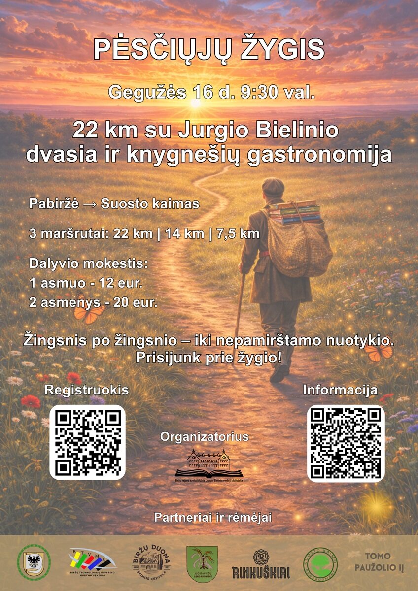 Gegužės 16 d. Pėsčiųjų žygis „22 km su Jurgio Bielinio dvasia ir knygnešių gastronomija“.