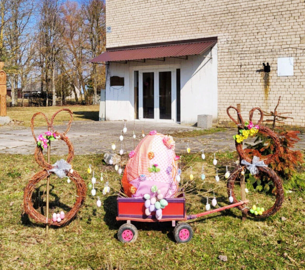 Rinkuškių bendruomenės nuotr.Rinkuškių bendruomenės (Širvėnos sen.) kieme šiemet „apsigyveno” velykiniai zuikiai. Šiekštininkų bendruomenės nuotr.Šiekštininkų kaimo bendruomenė visoms metų šventėms puošiasi ryškiai ir spalvingai, o artėjančių šventų Velykų proga prie bendruomenės namų „pasodino” ryškius ir žaismingus kiškius. Suosto kaimo bendruomenės nuotr.Suosto kaimo bendruomenė (Nemunėlio Radviliškio sen.) pagamintomis dekoracijomis džiugina važiuojančius keliu Germaniškis – Biržai.
