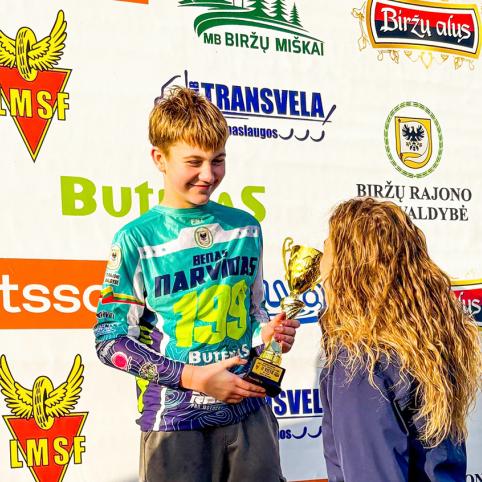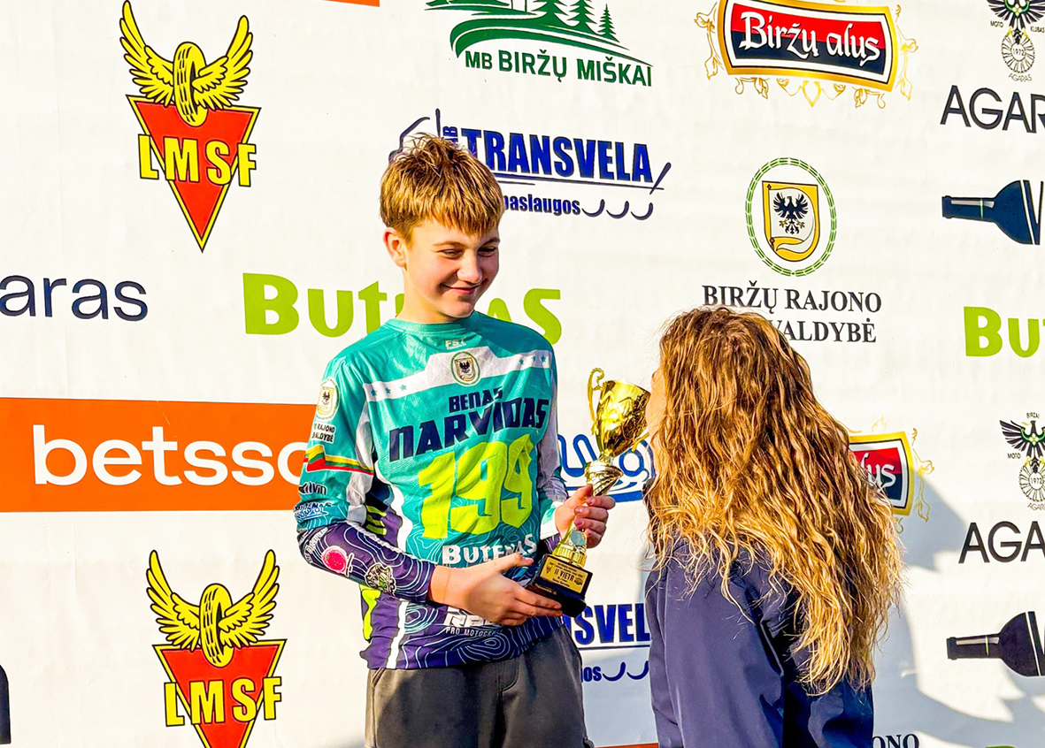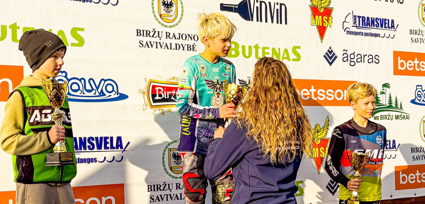Jaunajam Biržų motoklubo „Agaras“ sportininkui Arieliui Dudorui „namų sienos“ siuntė nemažai išbandymų. Sugedus motokrosininko motociklui, teko skubiai skolintis kitą – visai kitos markės, tad Arielius turėjo mažai laiko pasibandyti važiuoti nauju motociklu ir iš karto startuoti. Šokdamas per trampliną, jis kliudė varžovą, dėl to prarado galimybę kovoti dėl pirmosios vietos trečiajame važiavime.