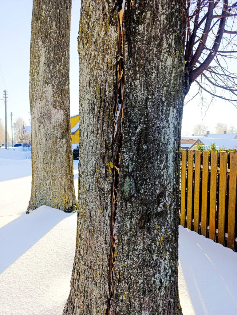 Anot seniūnės, pastaruoju metu, vyraujant dideliems šalčiams, pastebėtas medžių plyšimas – tai vadinamieji šalčio plyšiai, atsirandantys medžio kamieno viduryje.