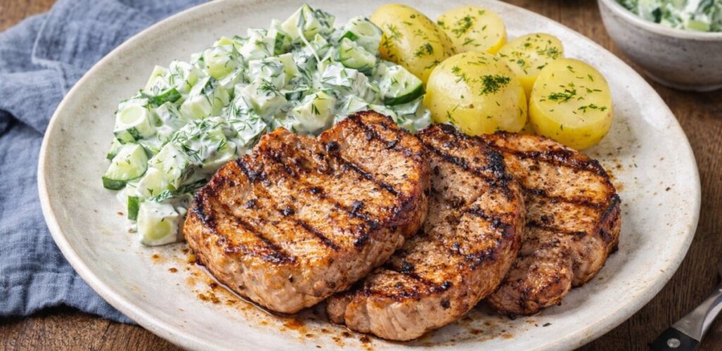 Home » Blog » Sultingi kiaulienos kepsniai su gaiviomis agurkų salotomis